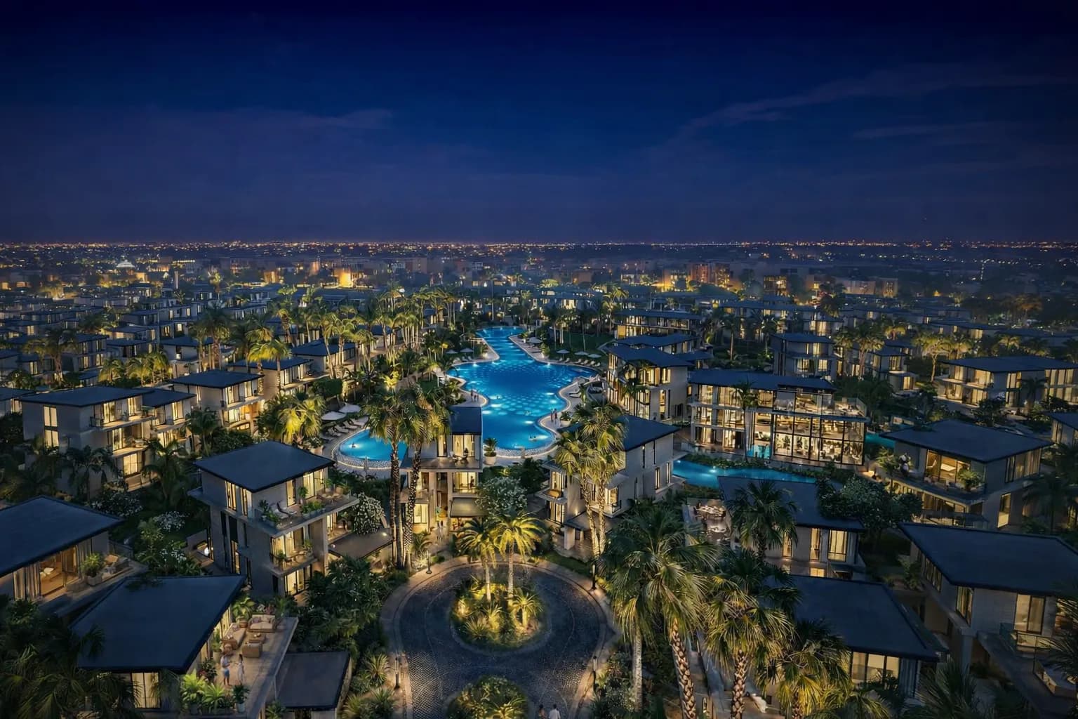 The community is designed around one of the largest man-made beach concepts, creating a unique waterfront lifestyle. It features private islands, water promenades, and green parks, along with open spaces, walking paths, and leisure areas for a balanced and peaceful lifestyle.