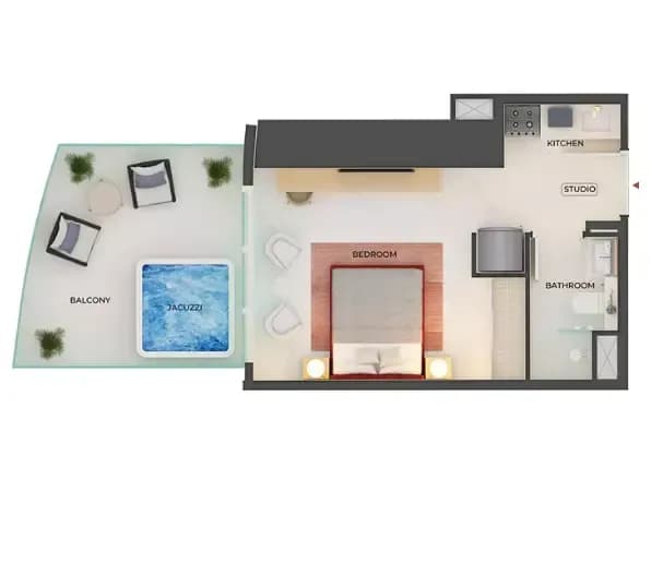 Experience the Studio Bedroom at Binghatti Skyblade, designed with expansive spaces and high-end finishes for luxury living.