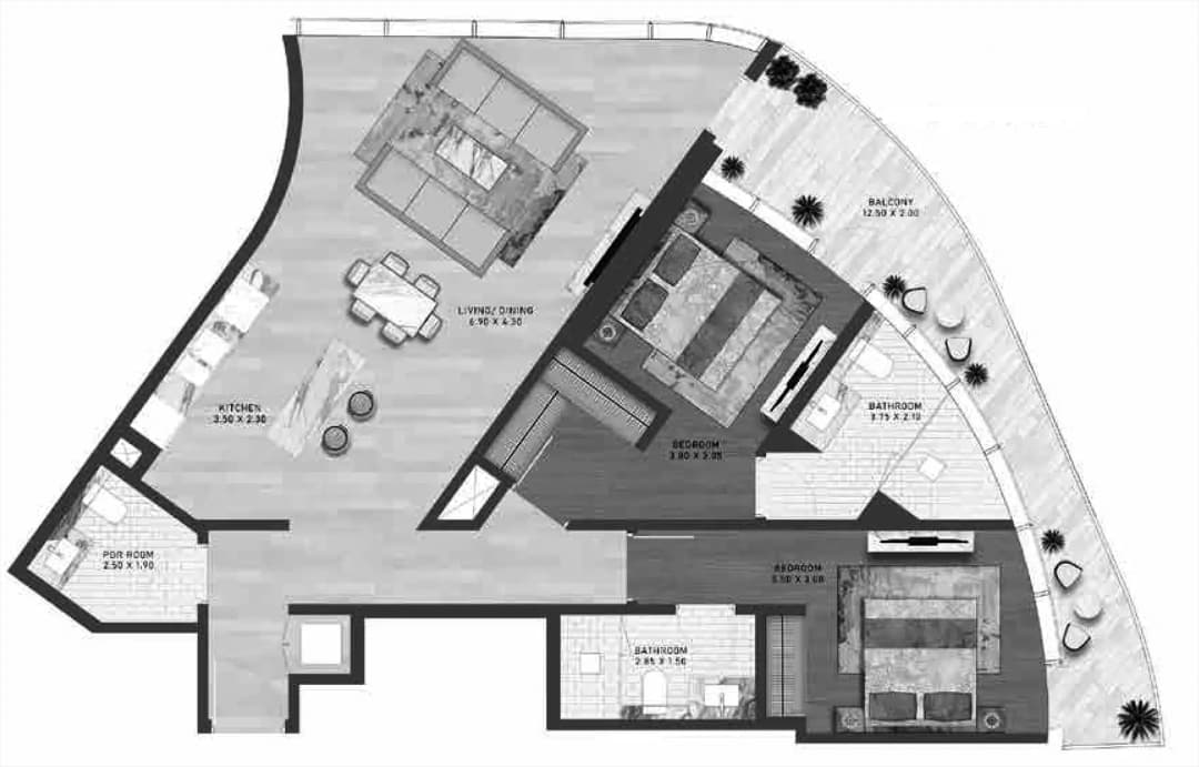 Explore Altitude de GRISOGONO floor plans with 2 bedroom apartments, offering smart layouts, modern interiors, and luxury living in Business Bay, Dubai.