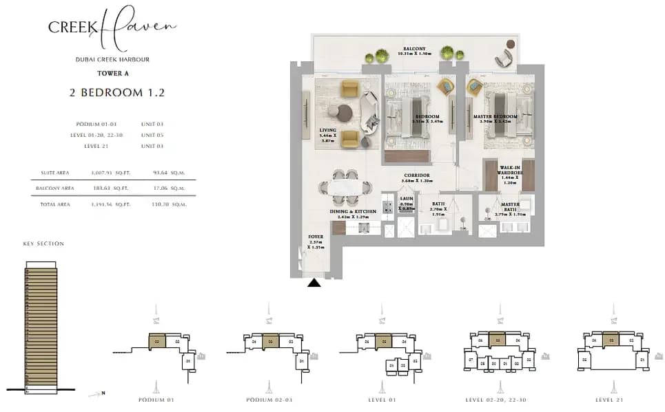 Explore spacious floor plans at Creek Haven, Dubai Creek Harbour by Emaar. Modern 1 - 3 bedroom waterfront apartments designed for luxury family living in Dubai.