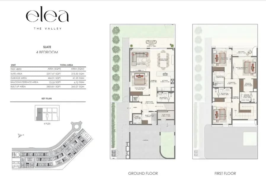 Explore the detailed floor plans of Elea The Valley, featuring thoughtfully designed townhouses with spacious layouts, modern interiors, and functional living spaces ideal for families and investors.