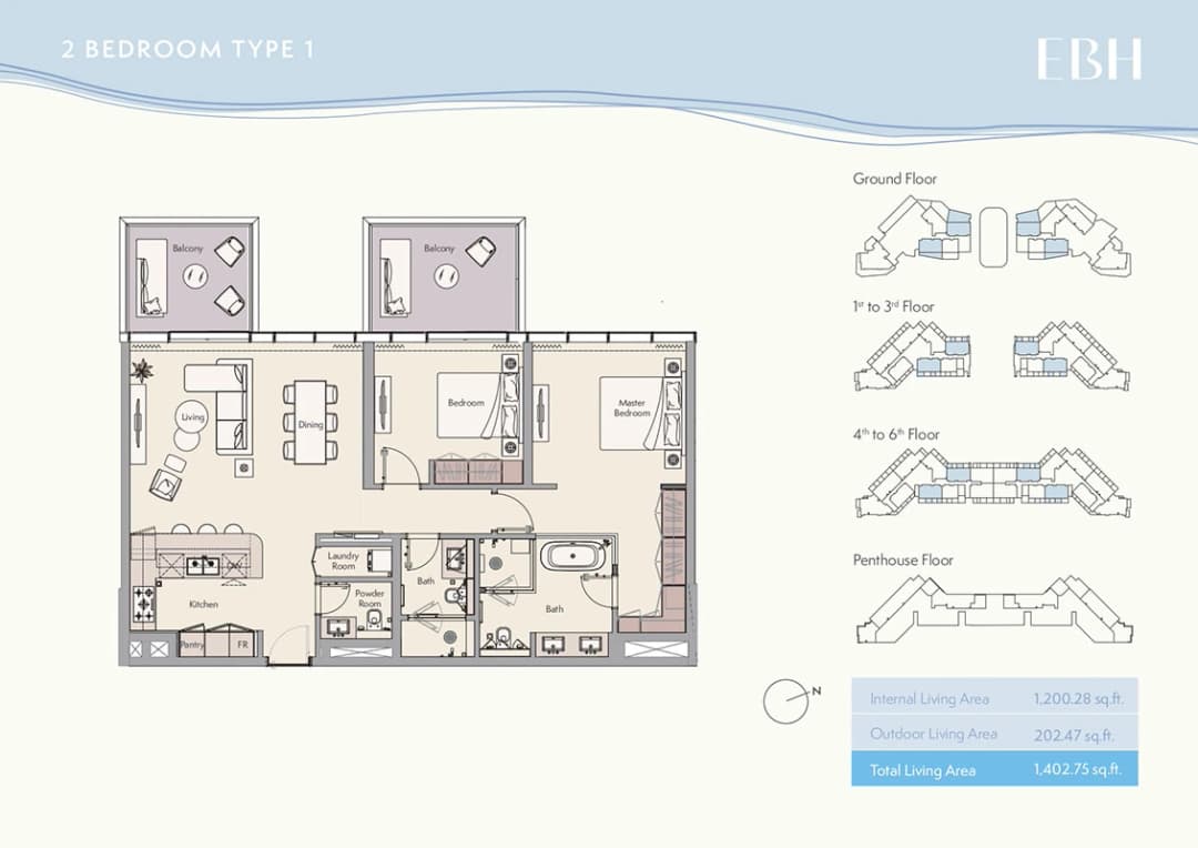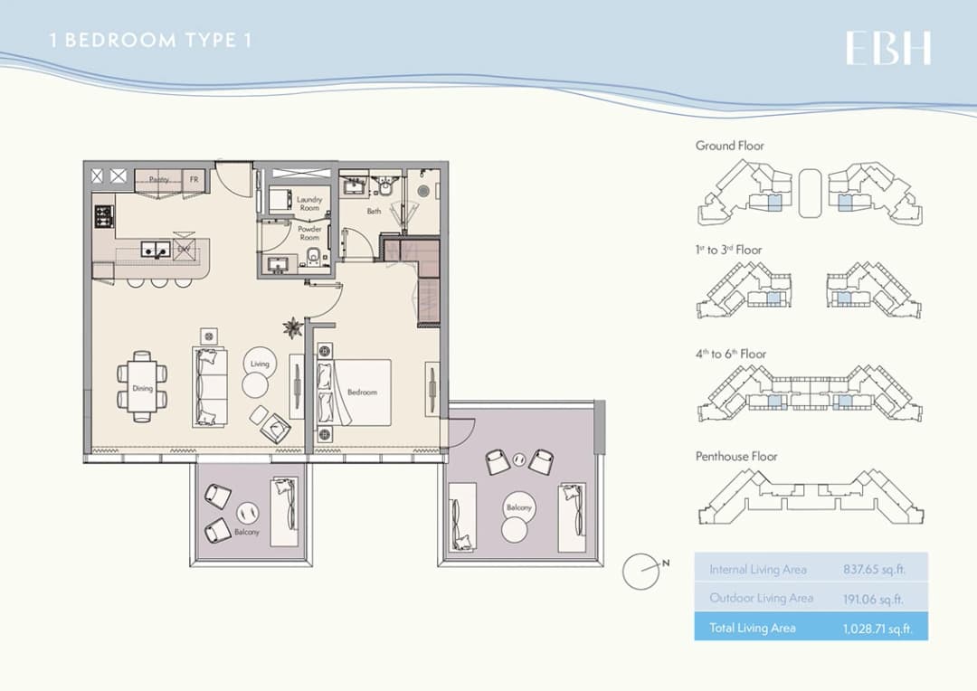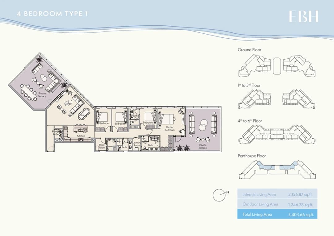 Ellington Beach House offers a range of thoughtfully designed layouts, including 1, 2, 3, and 4 bedroom apartments, along with exclusive penthouses. Each residence features open-plan living areas, spacious balconies, and floor-to-ceiling windows that maximize natural light and sea views.