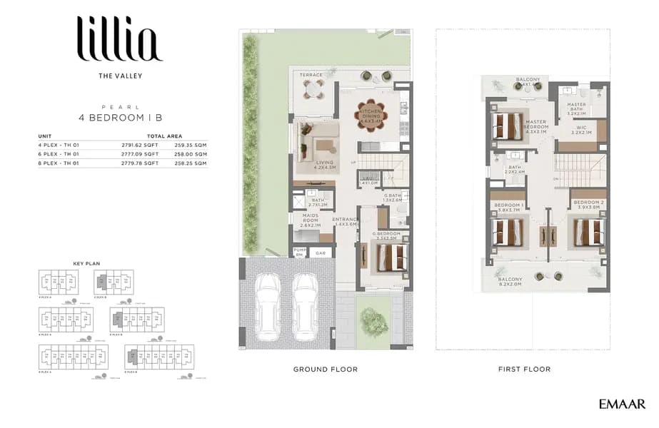 Lillia offers 3 and 4 bedroom townhouses with spacious layouts, private gardens, and modern interiors designed for comfortable family living.