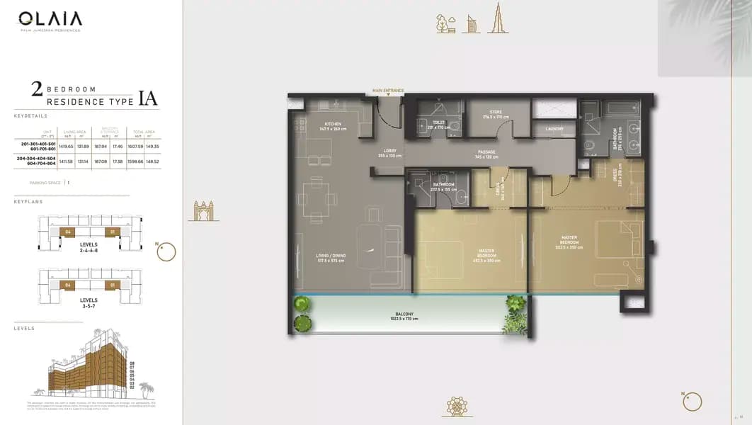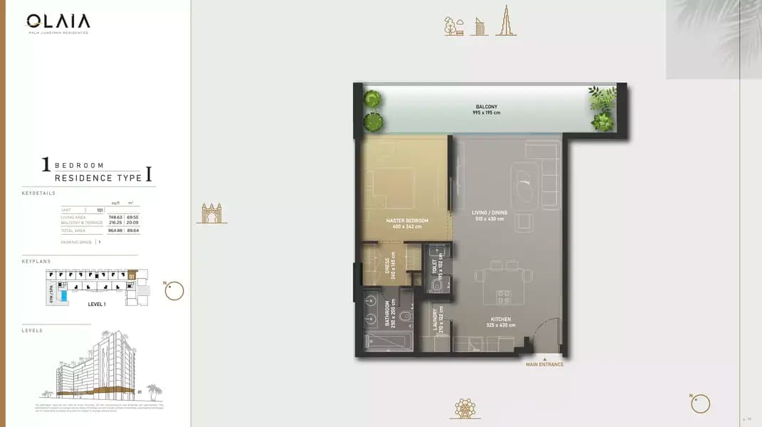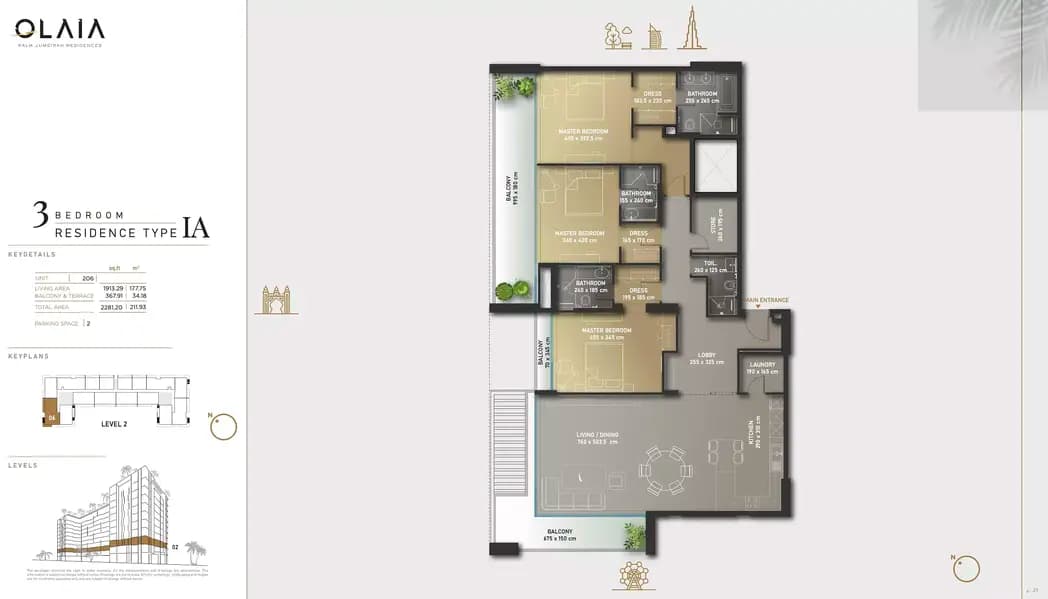 Explore the floor plan of Olaia Residences offering well-designed 1, 2 & 3 bedroom apartments with spacious layouts, modern interiors, and smart living spaces in Palm Jumeirah.