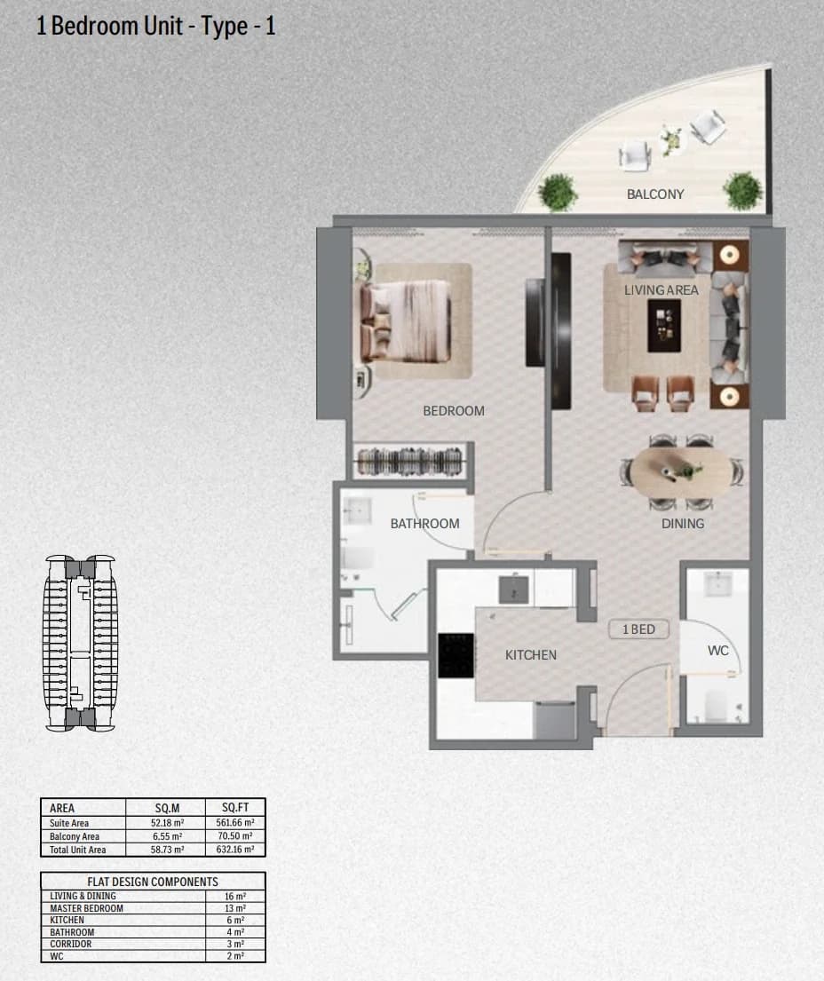 The project is located in Meydan, Nad Al Sheba, Dubai, offering excellent connectivity to Downtown Dubai, Business Bay, Dubai International Airport, and major commercial hubs through strategic highway access and public transport links.