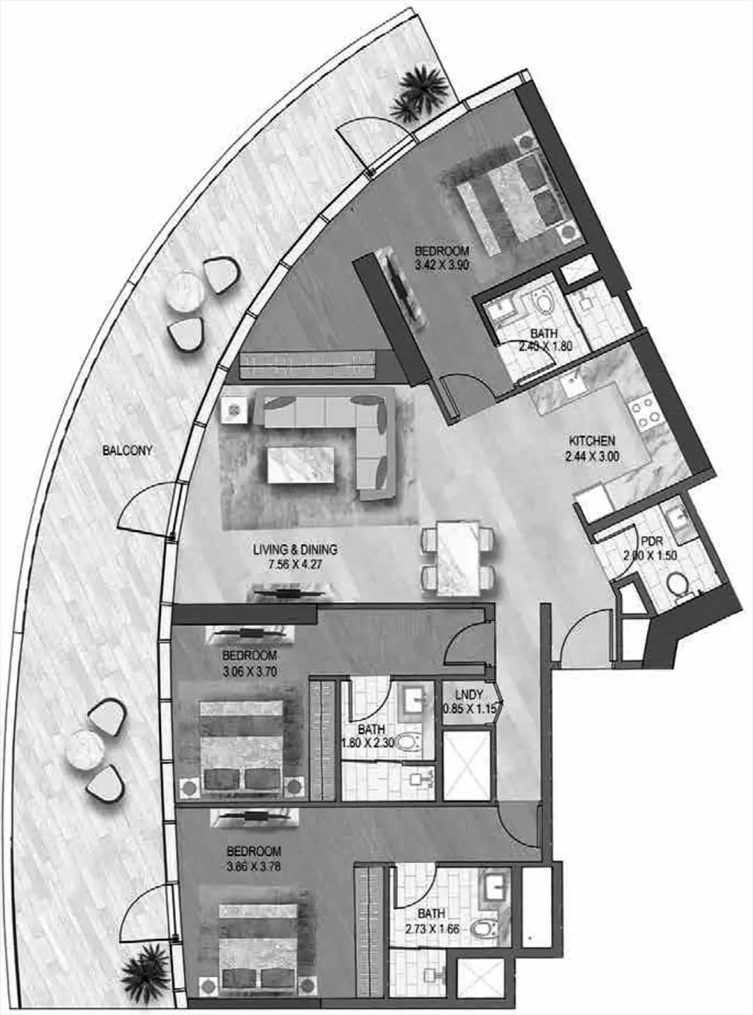 Explore Altitude de GRISOGONO floor plans with 2 bedroom apartments, offering smart layouts, modern interiors, and luxury living in Business Bay, Dubai.