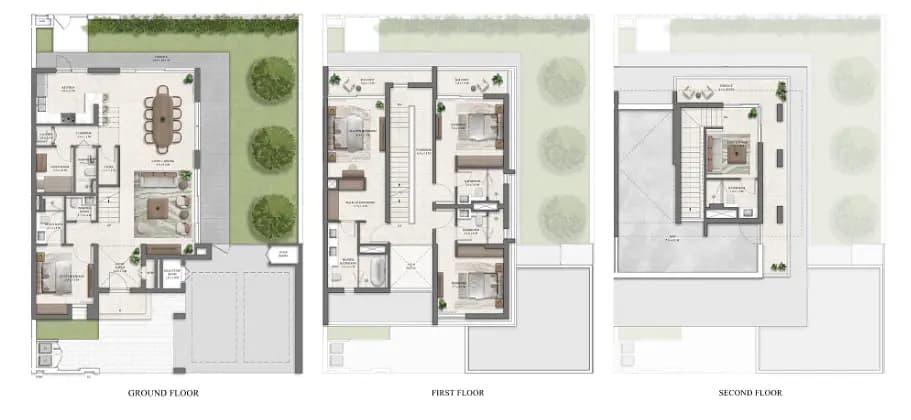 Explore Avena floor plans featuring well-designed 4 bedroom villas with spacious layouts, open living areas, private gardens, and smart space planning.