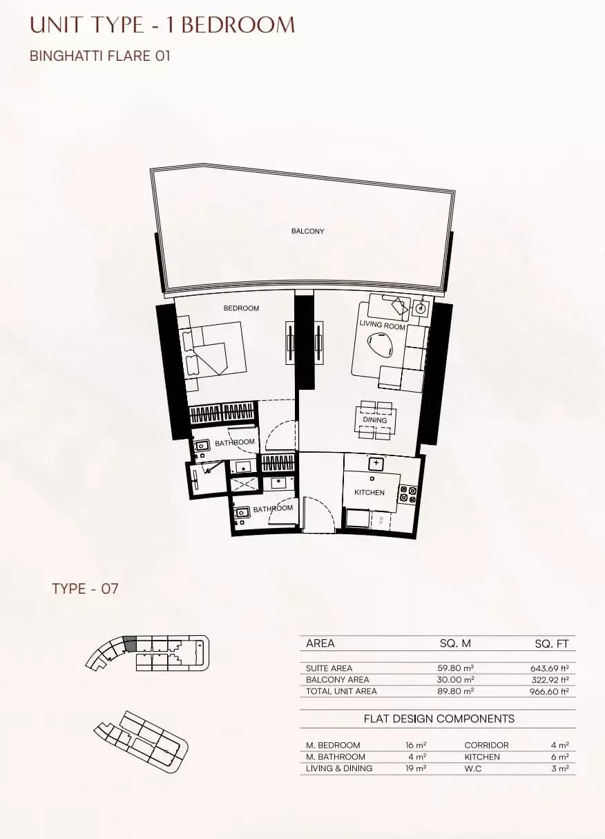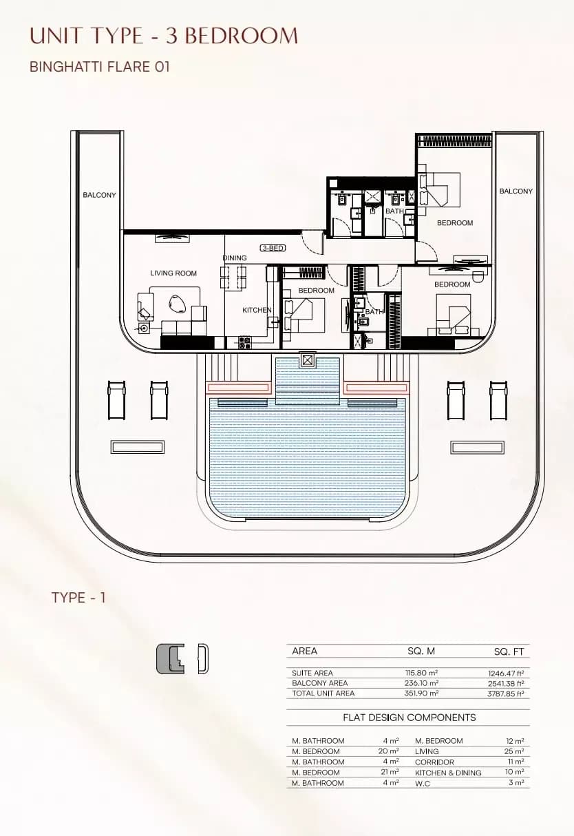 Binghatti Flare 01 features intelligently designed floor plans with efficient layouts, premium finishes, and well-balanced living spaces, crafted to enhance modern urban comfort.