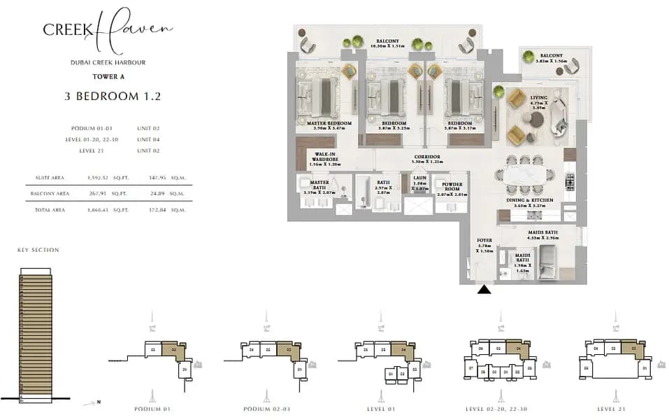 Explore spacious floor plans at Creek Haven, Dubai Creek Harbour by Emaar. Modern 1 - 3 bedroom waterfront apartments designed for luxury family living in Dubai.