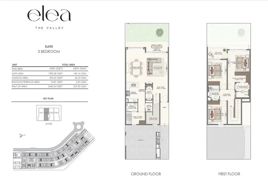 Explore the detailed floor plans of Elea The Valley, featuring thoughtfully designed townhouses with spacious layouts, modern interiors, and functional living spaces ideal for families and investors.