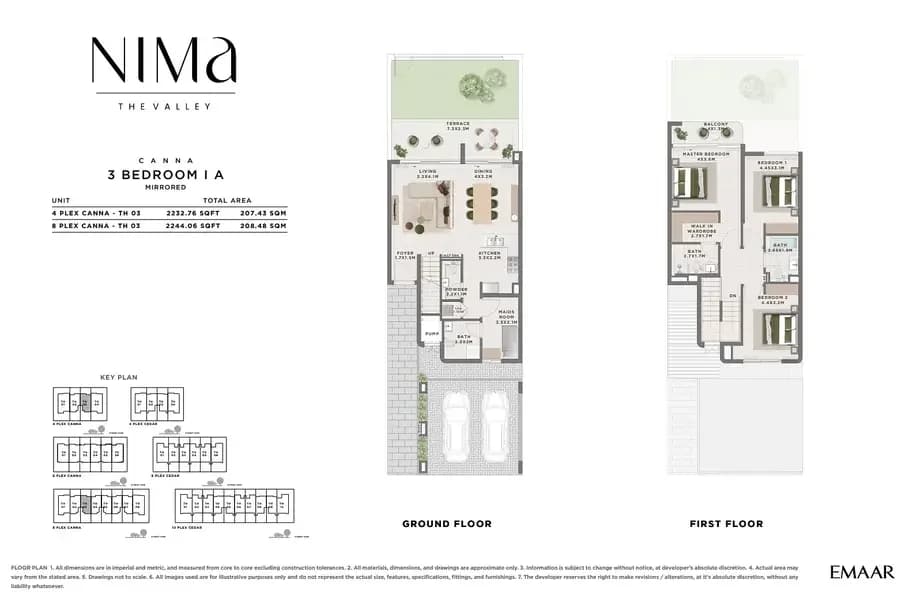 Explore the detailed floor plans of Nima The Valley, showcasing thoughtfully designed villas and townhouses with spacious layouts, modern interiors, and functional living spaces.