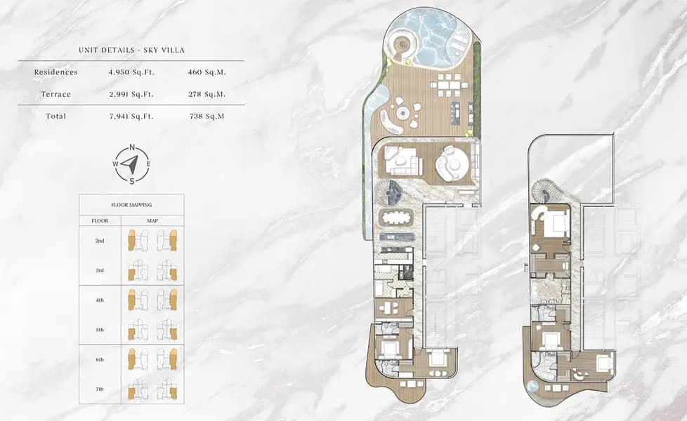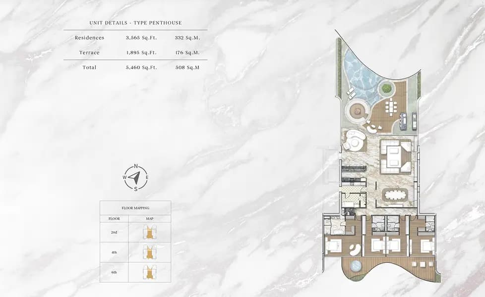 Discover the floor plan of One Crescent Palm featuring exclusive 6-bedroom penthouses with spacious layouts, private terraces, and luxury waterfront living in Palm Jumeirah by AHS Properties.