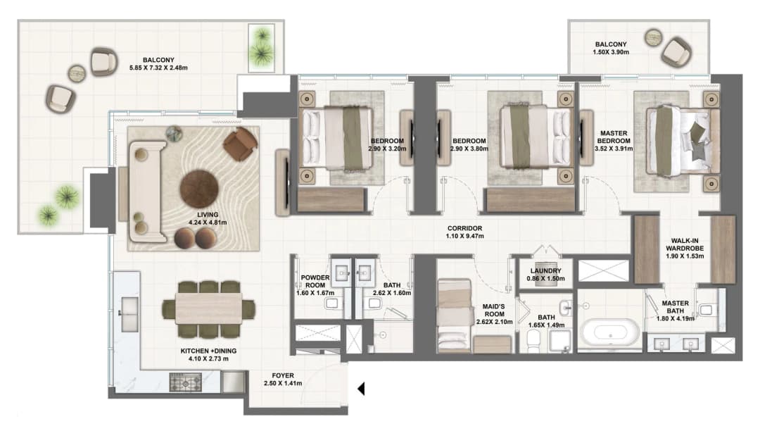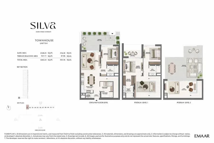 Explore SILVA at Dubai Creek Harbour floor plans showcasing spacious layouts, modern interiors, and living spaces focused on luxury, comfort, and family-friendly living.